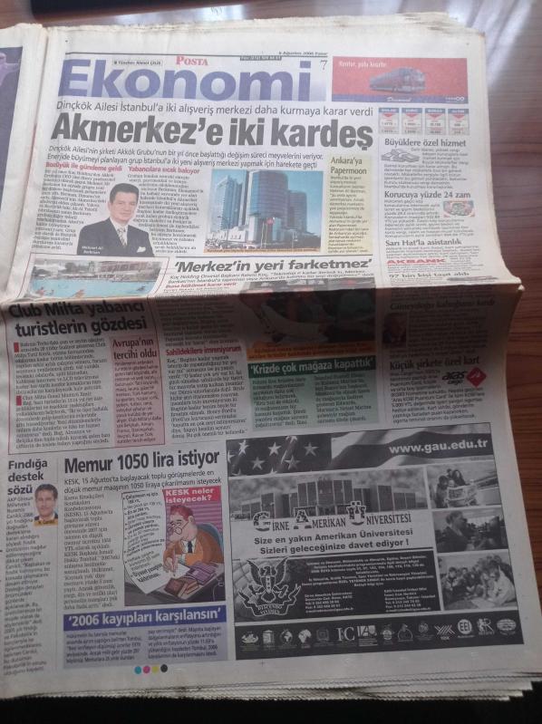 Posta Gazetesi - 6 Ağustos 2006 - Haydar Dümen - Aşk Doktoru Mehmet Coşkundeniz - Fenerbahçe 100. Yıla Süper Başladı - Tuncay Şanlı - Travestiye Linç Tehdidi - Savaş Ay - İsrail'den Lübnan'a 7 Saatte 4 Bin Bomba - Esin Maraşlıoğlu - Ajda Pekkan - Erol Evgin - Başbakan Recep Tayyip ERDOĞAN Ilısu Barajının Temelini Attı - Hasankeyf - Mesut Yılmaz adlı eser Türkçe dilindedir.