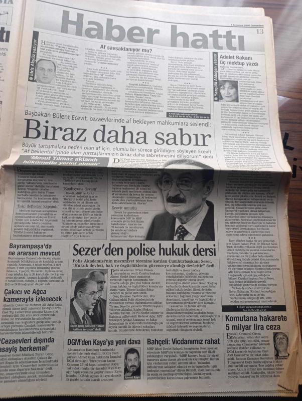 Posta Gazetesi - Turkish Newspaper - 1 Temmuz 2000 - Uzan'ların uyanıklığı - gizli af mektubu - adalet bakanı Hikmet Sami Türk Ecevit Devlet Bahçeli ve Mesut Yılmaz'a gizli birer mektup yazarak affı bir an önce çıkarmalarını istedi - işte tarihe geçecek satırlar - devletin resmi boyacısı Kayserili Mesut Çetin fotoğraf - Amerika'da tecavüzcü Türk doktoru Selim Can Alkoç aranıyor - yılın düğünü Füsun Topbaş ve Burak Bahar fotoğraf - Demet Şener'in silikonları dert oldu fotoğraf - Cem Özer Demet Sağıroğlu ve edip Araç Melih Kibar'a konuk olacaklar fotoğraf - vücut tipine göre mayo - SPK müfettişleri Çukurova elektrikten sonra Dün de Kepez'e baskın yaptı - Cumhurbaşkanı Ahmet Necdet Sezer'den polise hukuk dersi - DGM'den Ahmet Kaya'ya yeni dava - sinemada bugün - geleneksel 639. Kırkpınar güreşleri Dün düzenlenen açılış törenleri ile başladı - at yarışı rehberi - Samsunspor Ertuğrul Sağlam'ı çiçeklerle karşıladı - Fenerbahçe transferde sadece Lazetiç'i bitirebildi fotoğraf - Scala adlı eser, Kitap > Süreli Yayınlar > Gazeteler > Türkiye > Genel > Günlük kategorisinde İkinci El olarak satıştadır.