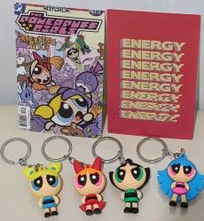 Powerpuff girls anahtarlık ve kartpostal set koleksiyon dekor tasarım hediye vintage retro nostalji aksesuar süs reklam promosyon