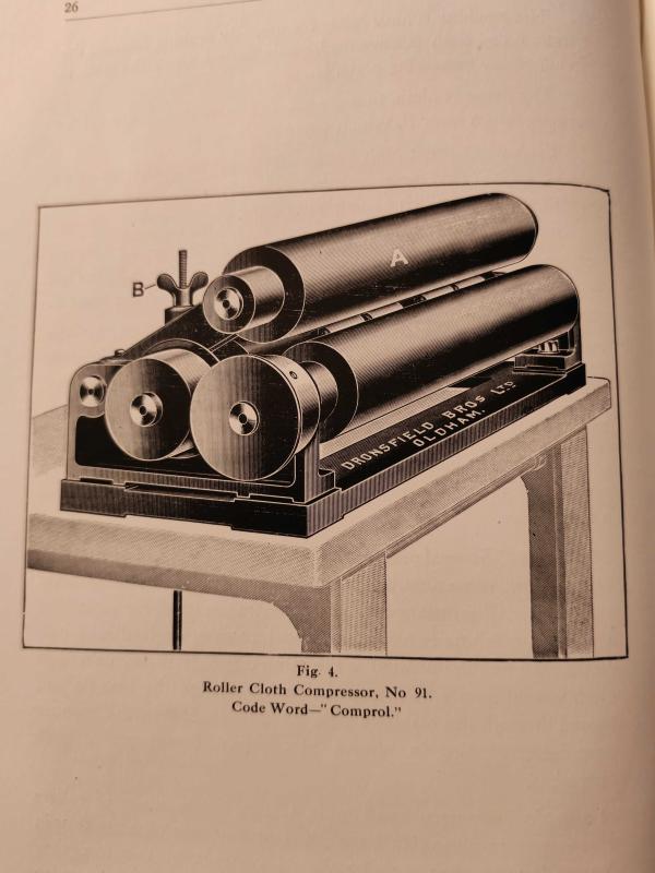 Kitap 1922 yılında Dronsfield Bros. Ltd tarafından [England] yayınlanmıştır. 80 sayfadır. Practical Roller Covering *The Roller Coverer's "Vade Mecum" A treatise on the practice of covering Cotton Spinners' Draft Rollers with cloth and leather [ CİLTLİ ] adlı eser İngilizce dilindedir.