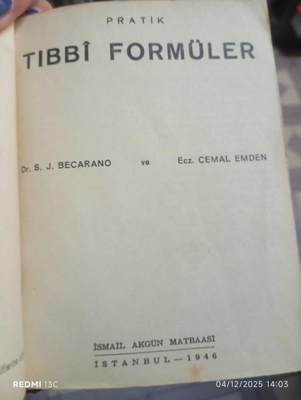 Pratik Tıbbi Formüller, Ş. J. Becarano, Cemal Emden tarafından kaleme alınmıştır. Kitap 1946 yılında İsmail Akgün Matbaası tarafından yayınlanmıştır. 807 sayfadır. Pratik Tıbbi Formüller adlı eser Türkçe dilindedir.