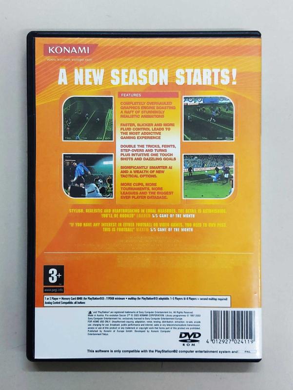 2003 yılında piyasaya sürülen, efsanevi PES serisinin orijinal Sony lisans damgalı üçüncü PlayStation 2 oyunu. Diskte oynatmaya engel olmayan çizikler mevcuttur. Test edilmiştir, sorunsuz bir şekilde çalışmaktadır. Son fotoğraflarda çalışır halde görüntüleri mevcuttur. Kutulu PS2 oyunu biriktirenler ve PES hayranları için bulunması güç, koleksiyonluk bir üründür.
