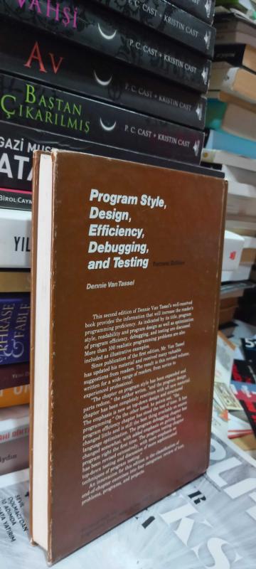 Program Style, Design, Efficiency, Debugging, And Testing ( Ciltli ), DENNİE VAN TASSEL tarafından kaleme alınmıştır. Kitap 1978 yılında PRENTİCE HALL tarafından yayınlanmıştır. 323 sayfadır. Program Style, Design, Efficiency, Debugging, And Testing ( Ciltli ) adlı eser İngilizce dilindedir.