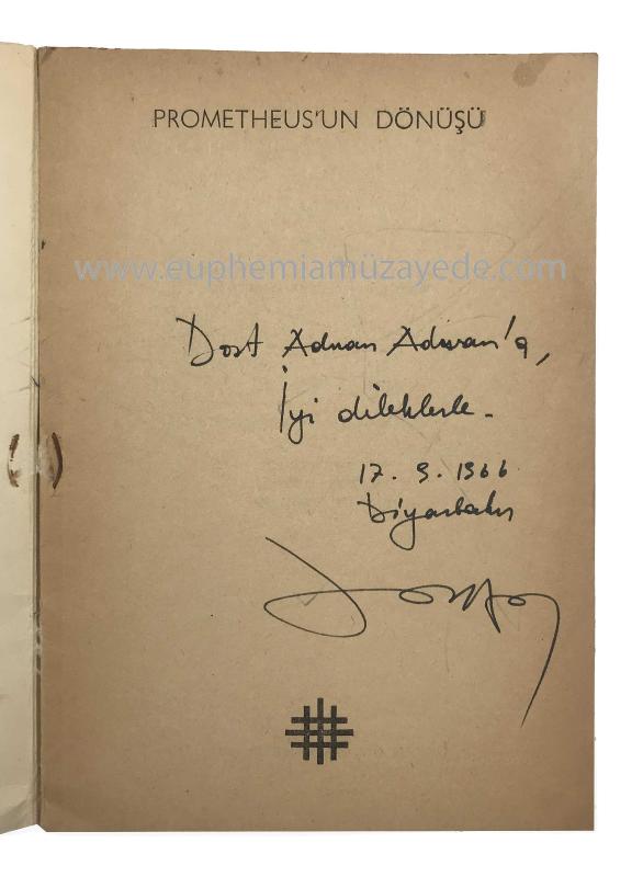 Prometheus’un dönüşü: Denemeler - eleştirmeler. Önsöz: Adnan Turani. [ADNAN ADIVAR’A İTHAFLI İMZALI] adlı eser, Kitap > Sanat > Resim, Heykel kategorisinde İkinci El olarak satıştadır.