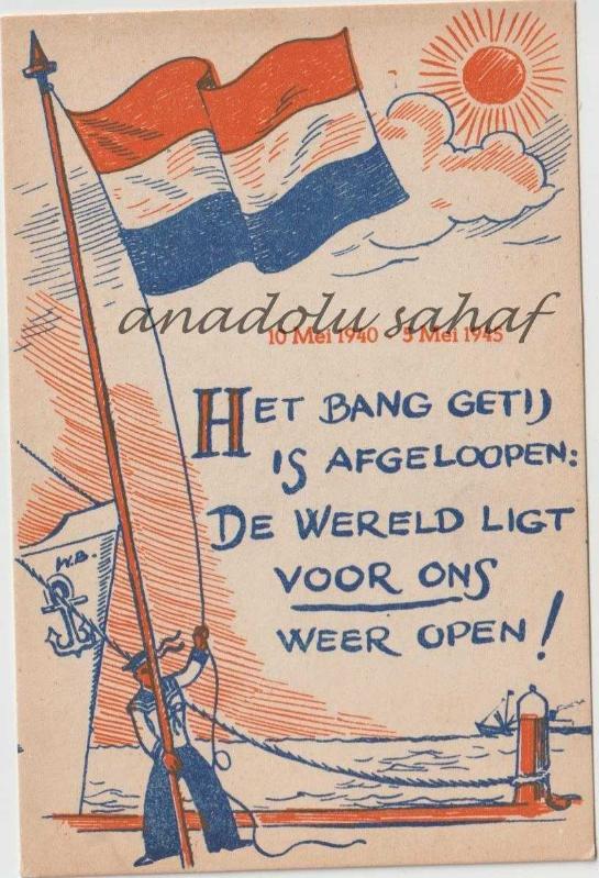 Propaganda - Het Bang Getij Is Afgeloopen: De Wereld Ligt Voor Ons Weer Open! 10 Mei 1940 - 5 Mei 1945 / Hollanda İkinci Dünya Savaşı Propaganda Kartı