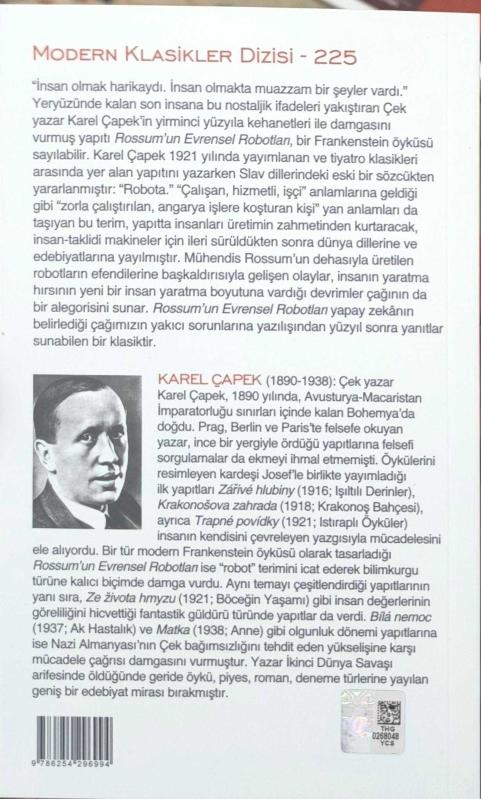R. U. R. - Rossum’un Evrensel Robotları, Karel Çapek tarafından kaleme alınmıştır. Kitap 2025 yılında İş Bankası Kültür Yayınları tarafından yayınlanmıştır. R. U. R. - Rossum’un Evrensel Robotları adlı eser Türkçe dilindedir.