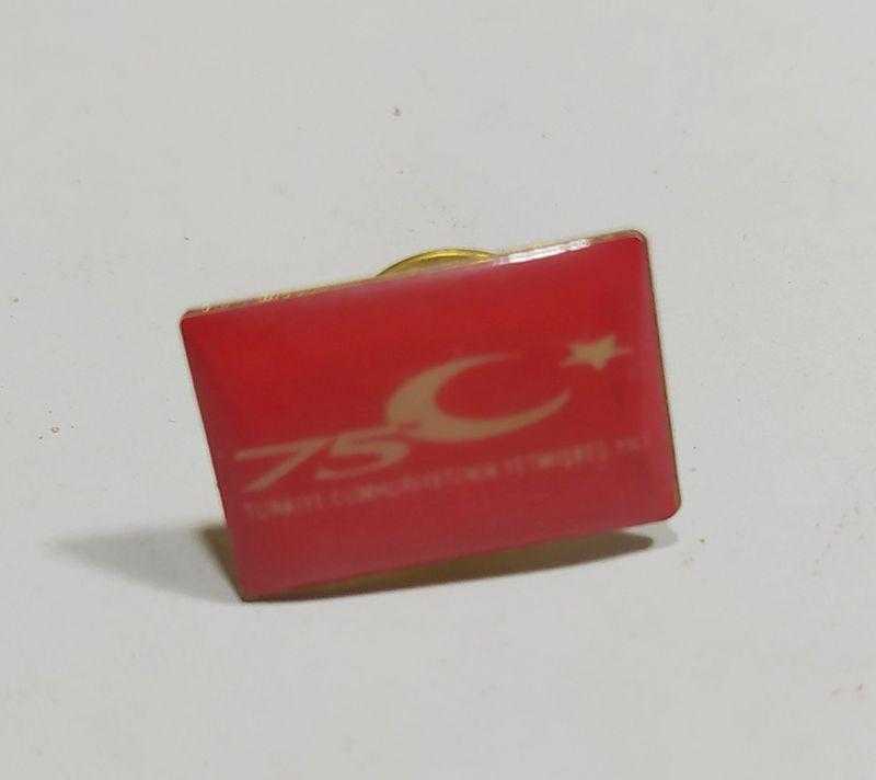 R17-75.YIL TÜRK BAYRAKLI ROZET başlıklı ürün, Antika-Koleksiyon, Hobi-Sanat > Koleksiyon Objeleri > Rozetler > Yerli Rozetler kategorisinde İkinci El olarak satışa sunulmuştur.