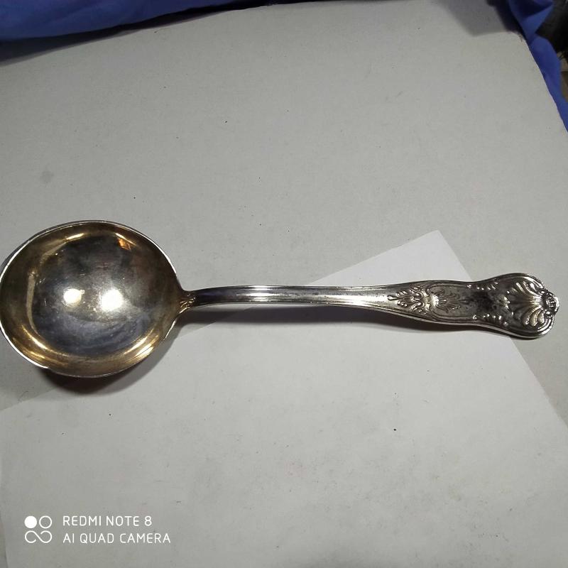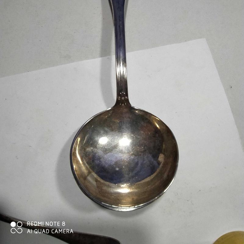 R34--GÜMÜŞ KAPLAMA ESKİ YEMEK KEPÇESİ başlıklı antika/koleksiyon objesi Avrupa menşe’lidir. 1950-1999 arası dönemine aittir.