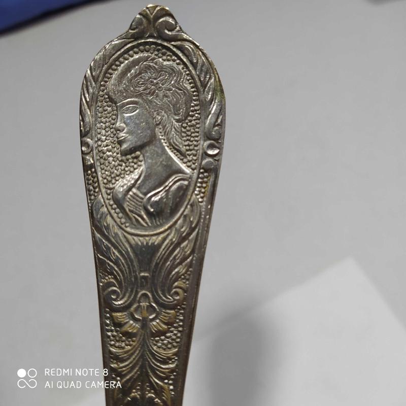 R34--GÜMÜŞ KAPLAMA KADIN PORTRELİ SERVİS KAŞIĞI başlıklı antika/koleksiyon objesi Avrupa menşe’lidir. 1920-1940 arası dönemine aittir.