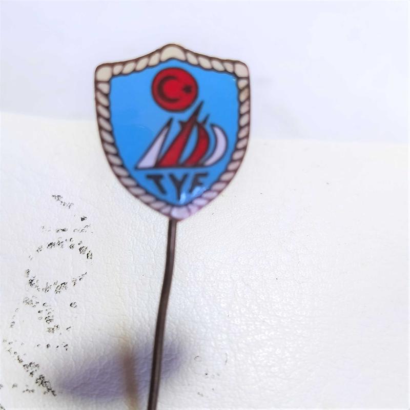 R57---TYF TÜRKİYE YELKEN FEDERASYONU ESKİ MİNELİ İĞNELİ ROZET başlıklı antika/koleksiyon objesi Türkiye menşe’lidir. 1950-1999 arası dönemine aittir.