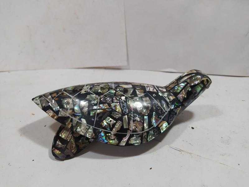 R74-----SEDEF DEKORLU KAPLUMBAĞA---ÖN AYAKLARI YOK başlıklı antika/koleksiyon objesinin menşei belirtilmemiştir. Objenin ait olduğu dönem bilinmeketedir.