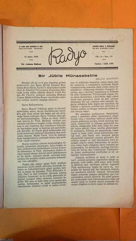 RADYO TEKNİĞİNDEN VE YAYINLARINDAN BAHSEDEN DERGİ, MECMUA SAYI : 15 - 15 ŞUBAT 1943 - SELİM SARPER - HAKKI TARIK US - HASAN ALİ YÜCEL - MATBUAT JÜBİLESİ - CEMAL YORULMAZ - RADYO SANATKÂRLARI KATEGORİLERİ - TÜRK MÜZİĞİ ŞUBESİ - TEMSİL ŞUBESİ - SENFONİ ORKESTRASI - CAZ ORKESTRASI - GARP MÜZİĞİ KOROSU - STAJİYER SANATKÂRLAR - İZZETTİN TUĞRUL NİSBAY - FERİT ALNAR - DAVID ZIRKIN - HALİL BEDİİ YÖNETKEN - CEVAT MEMDUH ALTAR - BEETHOVEN - GOETHE - BETTINA BRENTANO - EGMONT UVERTÜRÜ - TEPLİZ BULUŞMASI - CEMAL KÖPRÜLÜ - WERTHER - ROUSSEAU - LESSING - SHAKESPEARE - ROMANTİZM - KLASİK EDEBİYAT - 26 SAYFA adlı eser, Kitap > Süreli Yayınlar > Dergiler > İş ve Ekonomi kategorisinde İkinci El olarak satıştadır.