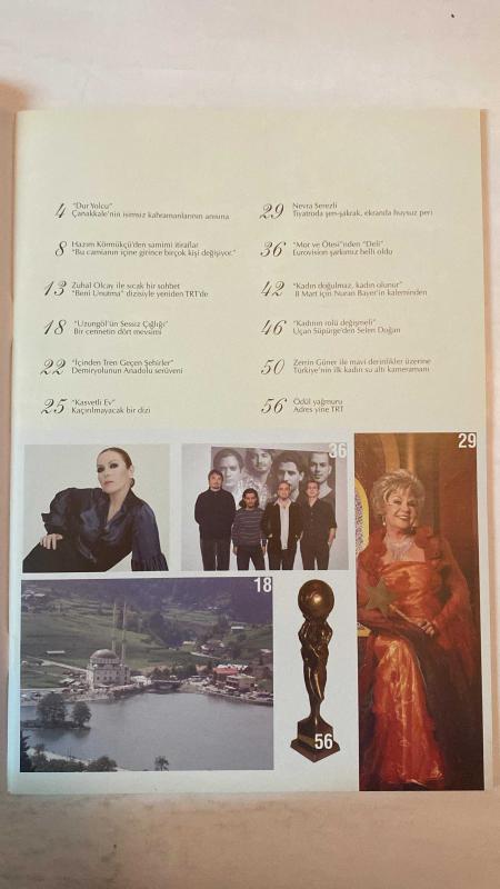 RADYO TELEVİZYON AYLIK HABER YAYIN DERGİSİ - MART 2008 SAYI: 226 ZUHAL OLCAY - HAZIM KÖRMÜKÇÜ - MOR VE ÖTESİ - NEVRA SEREZLİ - NURAN BAYER - SELEN DOĞAN - ZERRİN GÜNER - İSMAİL GÜNEŞ “DUR YOLCU”: ÇANAKKALE’NİN İSİMSİZ KAHRAMANLARINA SAYGIYLA - HAZIM KÖRMÜKÇÜ İLE SÖYLEŞİ: “BU CAMİANIN İÇİNE GİRİNCE BİRÇOK KİŞİ DEĞİŞİYOR” - ZUHAL OLCAY: “BENİ UNUTMA” DİZİSİYLE YENİDEN TRT’DE - “UZUNGÖL’ÜN SESSİZ ÇIĞLIĞI”: BİR CENNETİN DÖRT MEVSİMİ - “İÇİNDEN TREN GEÇEN ŞEHİRLER”: DEMİRYOLUNUN ANADOLU SERÜVENİ - “KASVETLİ EV”: KAÇIRILMAYACAK BİR DİZİ - NEVRA SEREZLİ: TİYATRODA ŞEN-ŞAKRAK, EKRANDA HUYSUZ PERİ - MOR VE ÖTESİ’NDEN “DELİ”: EUROVISION ŞARKIMIZ BELLİ OLDU - “KADIN DOĞULMAZ, KADIN OLUNUR”: 8 MART DÜNYA KADINLAR GÜNÜNE ÖZEL - UÇAN SÜPÜRGE’DEN SELEN DOĞAN - MAVİ DERİNLİKLERDE ZERRİN GÜNER: TÜRKİYE’NİN İLK KADIN SU ALTI KAMERAMANI - ÖDÜL YAĞMURU: ADRES YİNE TRT - TAM TAKIM EKSİKSİZ 74 SAYFA adlı eser, Kitap > Süreli Yayınlar > Dergiler > Magazin, Moda kategorisinde İkinci El olarak satıştadır.
