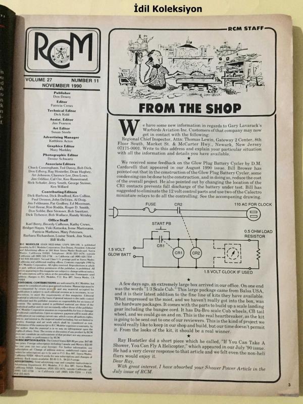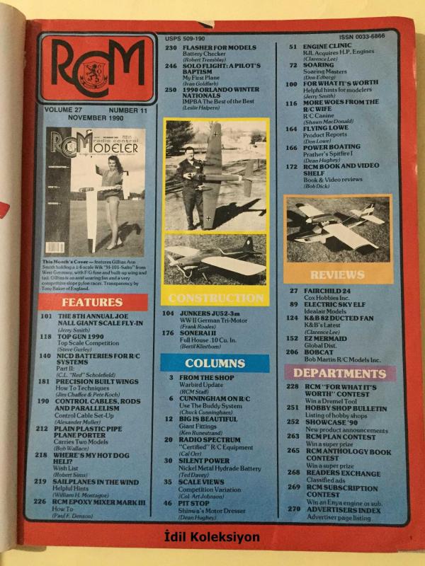 RC Modeler Radio Control Airplanes Flying Electrical - November 1990 - Vintage Magazine - İngilizce Uzaktan Kumandalı Model Uçak Dergisi - Construction : Top Gun 1990 - Junkers JU52 - Sonerai II - Fairchild 24 - Electric Sky Elf - Ez Mermaid - Bobcat - Focke Wulf - Safari 45H - Sun Bird 120