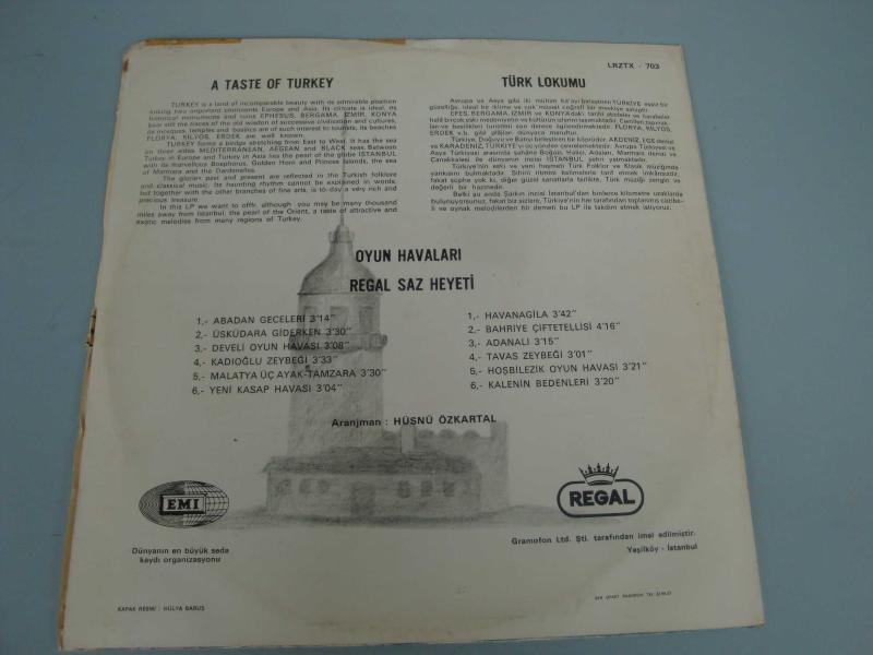 REGAL SAZ HEYETİ ( HÜSNÜ ÖZKARTAL ) " A Taste Of Turkey (Türk Lokumu) " LP RAGAL PLAK Kap : 8 - Plak : 8,5 Kap ÇOK TEMİZ , Plak ÇOK ÇOK TEMİZ durumdadır " .. Şarkı Listesi : A1 Abadan Geceleri A2 Üsküdara Giderken A3 Develi Oyun Havası A4 Kadıoğlu Zeybeği A5 Malatya Üç Ayak-Tamzara A6 Yeni Kasap Havası B1 Havanagila B2 Bahriye Çiftetellisi B3 Adanalı B4 Tavas Zeybeği B5 Hoşbilezik Oyun Havası B6 Kalenin Bedenleri