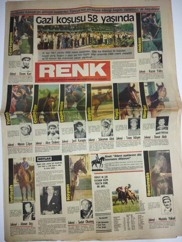 RENK GAZETESİ DOĞUM GÜNÜ GAZETESİ-17 Haziran 1984-Ekrem Kurt-Kazım Yıldız-Mümin Çılgın-Akın Özdeniz-Şerif Karagöz-Süleyman Akdağ-Tunay Adışen-Davut Akdağ-Ahmet Atçı-Sedat Okumuş-Mustafa Göçer-Nezihe Araz-Şükrü Kızılot-Piyale Madra-Ralph Smith-Haslet Soyöz-Frank Ridgeway-Semih Poroy-Hikmet Feridun Es-Neşe Erberk-Sarah Bernhardt-Morris-Goscinny Gazi koşusu 58 yaşında-Bedensiz Kadın-Göz Aldanması-Otomobil uçar gider-Yeşil Parmaklı Çocuk-Gül Kızım-Çekirgeler Sirki Başkanı-4 Boynuzlu Koç-İçindeki Yumurta-Hafiye 99-İki çağın ve iki dünyanın arasındaki şehir: İstanbul-Kadınlar Alemi-Ramazanda Resimli Fıkralar-Kırk Yıllık Bektaşiler-Ortaoyunu-Modern Evliya Çelebi’den anılar-Avrupa güzelimiz Amerika’dan seslendi-Ahmet’in Günlüğü ekrana hazır-La Traviata-Violette Noziere-Bağdat Sihirbazı-Red Kit-Sarah Bernhardt adlı eser, Kitap > Süreli Yayınlar > Gazeteler > Türkiye > Genel > Günlük kategorisinde İkinci El olarak satıştadır.