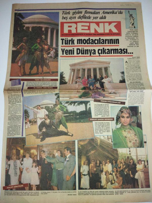 RENK GÜNLÜK GAZETESİ-21 Haziran 1984-Türk modacılarının yeni dünya çıkarması-Mehmet biber-Modist zuhal Yorgancıoğlu-Türk giyim firmaları Amerika’da beş ayda defilede yer aldı-Türk işlemeleri-Mehmet biber-elemeyi Göznuru-Anadolu’da kadın evliyalar-Hüma Hatun-bulmaca-falınız ve burcunuz-Nümeroloji yılın sayısı-Semih Poroy-avrupalı büyüyen bir İslam sanatı halıcılık-Mevlânâ Anadolu’ya neden geldi-ramazan sohbetleri-ikizler burcu-bulmaca-Garden bar Gazinosu-Belçikalı şantöz Rouchane-Lucky Lady filmi-Shannon Tweed-tiyatrocu zafer Önen-Ergun Semiroğlu-Maurice Chevaller-sayfa sayısı dört tur adlı eser Türkçe dilindedir. Eserin içeriğinde Türkçe dilinde bölümlere de yer verilmektedir.