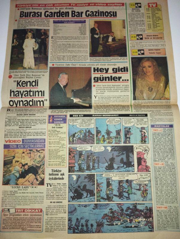 RENK GÜNLÜK GAZETESİ-21 Haziran 1984-Türk modacılarının yeni dünya çıkarması-Mehmet biber-Modist zuhal Yorgancıoğlu-Türk giyim firmaları Amerika’da beş ayda defilede yer aldı-Türk işlemeleri-Mehmet biber-elemeyi Göznuru-Anadolu’da kadın evliyalar-Hüma Hatun-bulmaca-falınız ve burcunuz-Nümeroloji yılın sayısı-Semih Poroy-avrupalı büyüyen bir İslam sanatı halıcılık-Mevlânâ Anadolu’ya neden geldi-ramazan sohbetleri-ikizler burcu-bulmaca-Garden bar Gazinosu-Belçikalı şantöz Rouchane-Lucky Lady filmi-Shannon Tweed-tiyatrocu zafer Önen-Ergun Semiroğlu-Maurice Chevaller-sayfa sayısı dört tur adlı eser, Kitap > Süreli Yayınlar > Gazeteler > Türkiye > Genel > Günlük kategorisinde İkinci El olarak satıştadır.