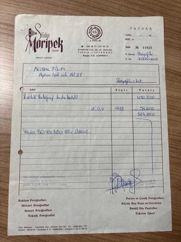 RENKLİ FOTOKOPİ BASKI BEDELİ FATURASI - STÜDYO MORİPEK - FİRDEVS MORİPEK - TAKSİM, İSTANBUL, ANTETLİ - KEMAL FİLM, MEHMET KEMAL SEDEN - BEYOĞLU, İSTANBUL - ISLAK İMZALI, KAŞELİ - 21 x 29 cm EBATLI ORİJİNAL FATURA,TÜRK SİNEMA - FİLM TARİHİ, en son 1 yıl önce güncellenmiştir.