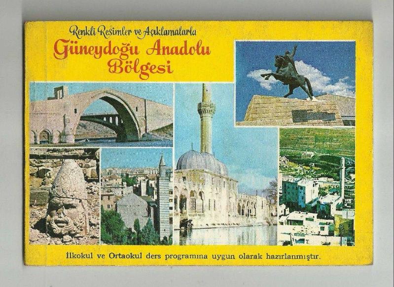 ** GÜNEYDOĞU ANADOLU BÖLGESİ ALBÜMÜ ** 16.5 x 11.5 cm.boyutunda,70 sayfa cıvarında, gayet temiz durumda,Ticaret Matbaacılık A.Ş. baskısı, ilkokul ve ortaokul ders programına uygun olarak hazırlanmış olan, Güneydoğu Anadolu'daki tüm şehir ve pek çok önemli ilçenin tanıtıldığı bir albümdür...