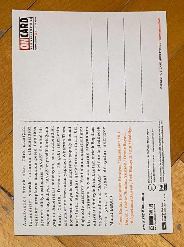 REPLİKAS * AVAZ * ALBÜM TANITIM KARTPOSTALI * 2005 * 10 x 16 CM, en son 2 yıl önce güncellenmiştir.