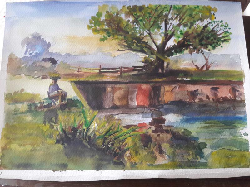 RESİM - MAHZUN IRMAK KENARINDA YAPAYALNIZ KALMIŞ TENEZZÜH HALİNDE KADIN . SULUBOYA KARIŞIK KARTON KAĞIT ÜZERİNE ÇALIŞMA EBAT:21 × 30 cm., 2 yıl önce satışa sunulmuştur.