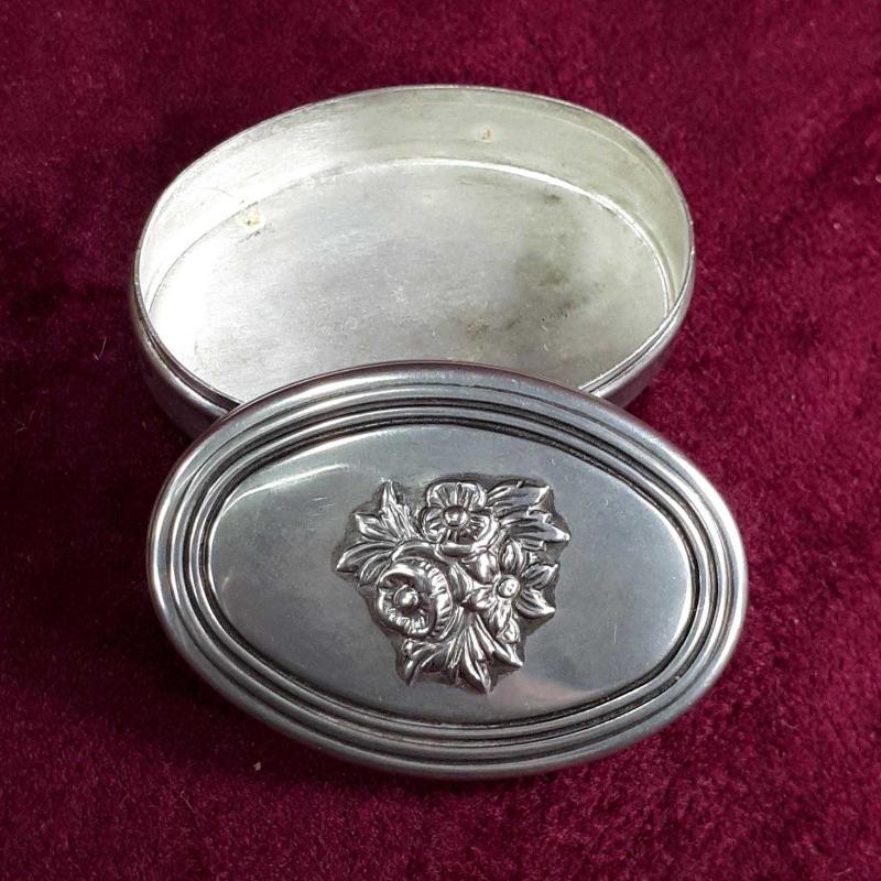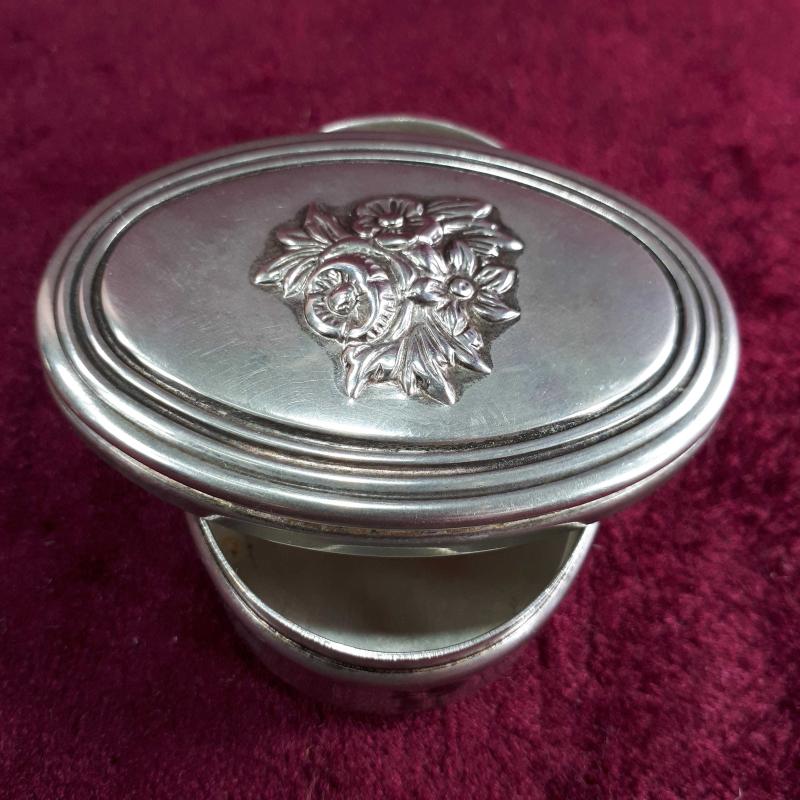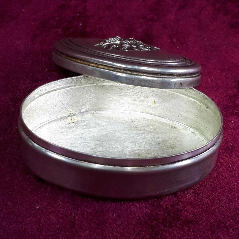RETRO CHINELLI MADE IN ITALY KAPAĞI KABARTMA ÇİÇEK MOTİFLİ GÜMÜŞ KAPLAMA OVAL METAL TAKI KUTUSU başlıklı ürün, Antika-Koleksiyon, Hobi-Sanat > Antika > Antika Metal Objeler > Gümüş > Gümüş Kaplama kategorisinde İkinci El olarak satışa sunulmuştur.