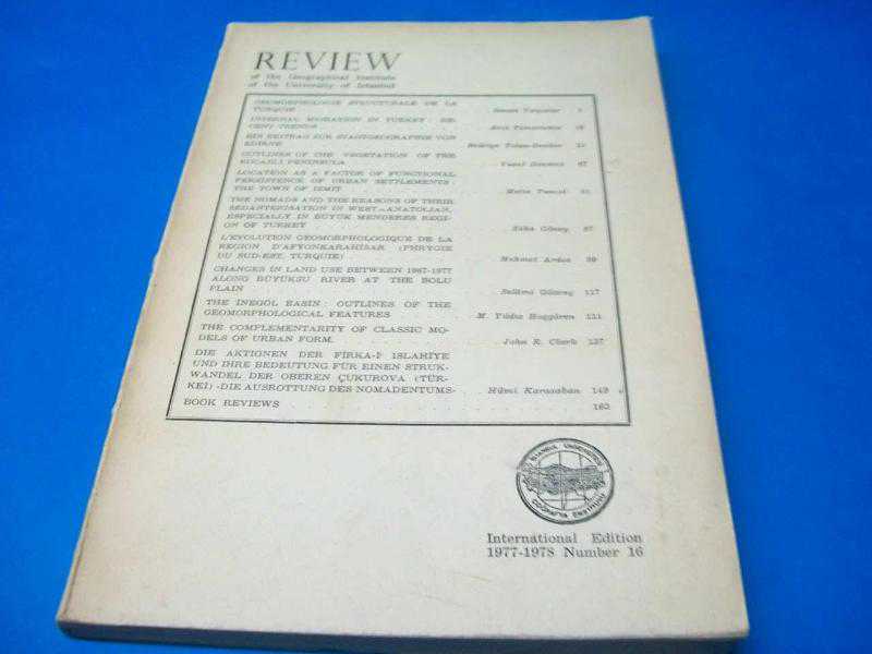 REVIEW OF THE GEOGRAPHICAL INSTITUE OF THE UNIVERSITY OF ISTANBUL NUMBER 16 1977-1978 168 SAYFA 16X24 CM TEMİZ