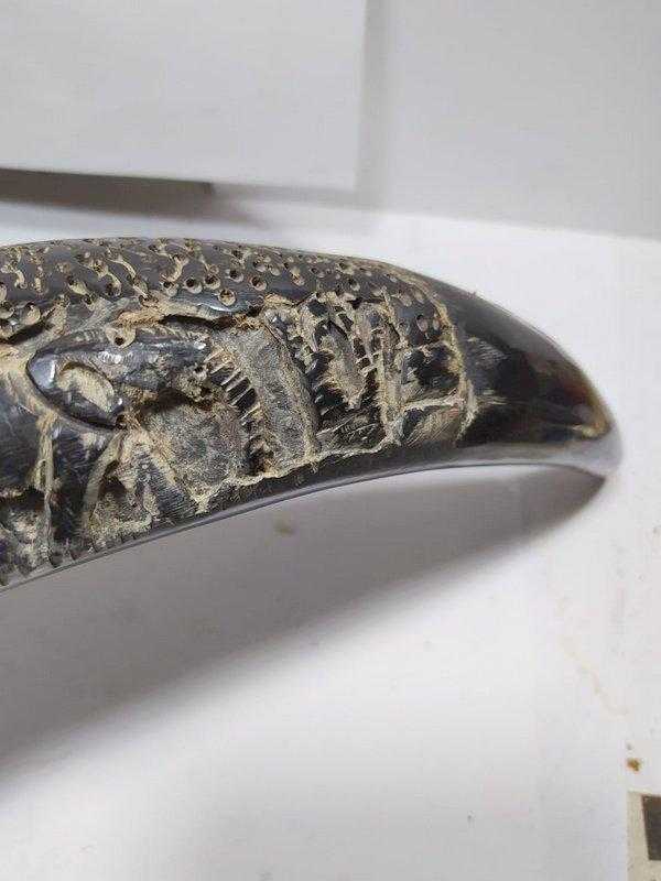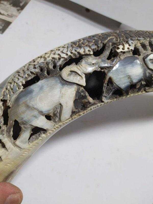 RF23----EL OYMA FİL FİGÜR BOĞA BOYNUZU --KAİDESİ YOK başlıklı antika/koleksiyon objesinin menşei belirtilmemiştir. Objenin ait olduğu dönem bilinmeketedir.