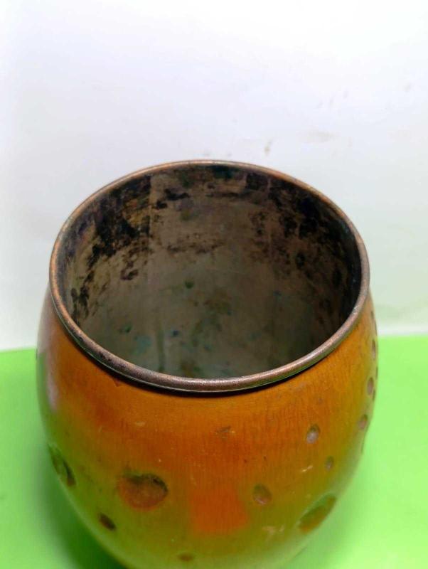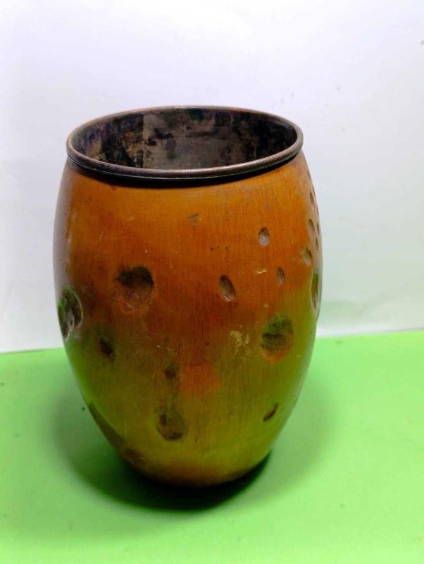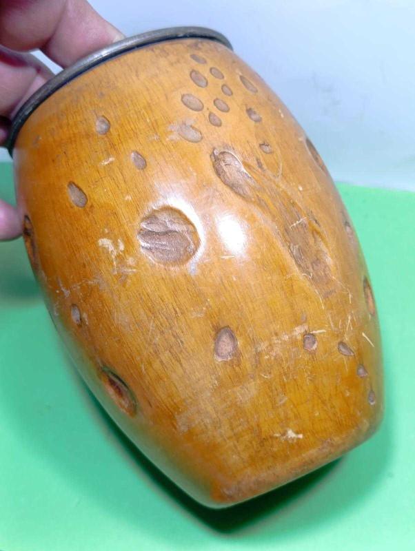 RF38---İÇİ BAKIR ESKİ AHŞAP FIÇI ŞEKLİNDE KUTU başlıklı antika/koleksiyon objesi Türkiye menşe’lidir. 2000 ve sonrası dönemine aittir.
