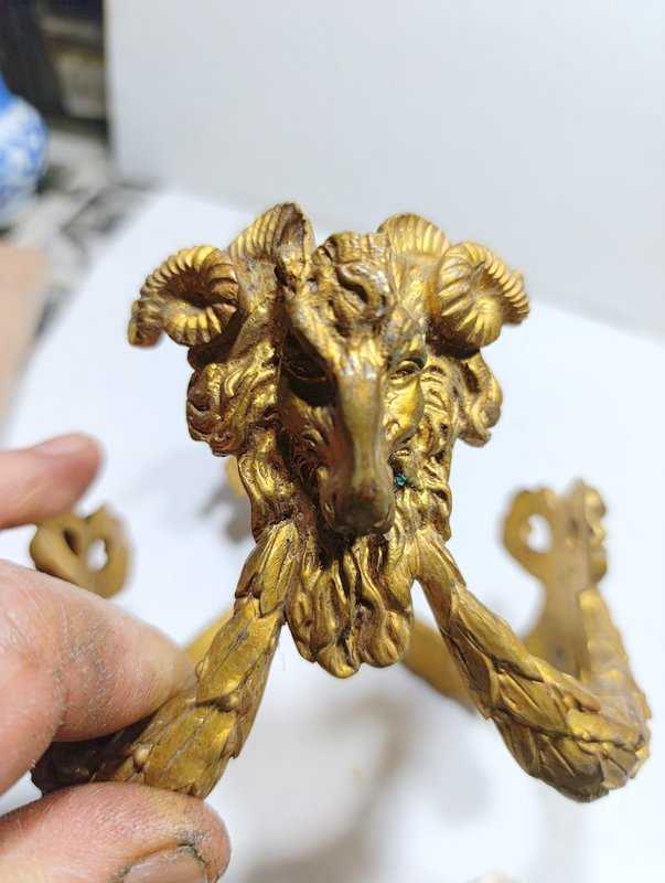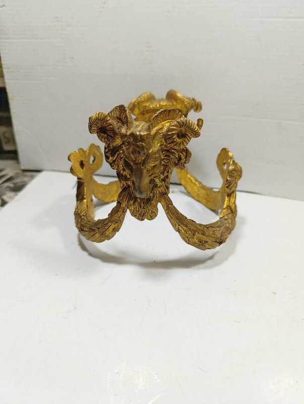 RF41-----KOÇ BAŞI DEKORLU PİRİNÇ OBJE başlıklı antika/koleksiyon objesinin menşei belirtilmemiştir. Objenin ait olduğu dönem bilinmeketedir.
