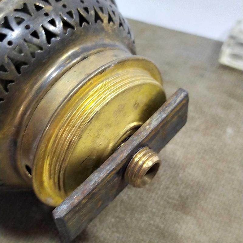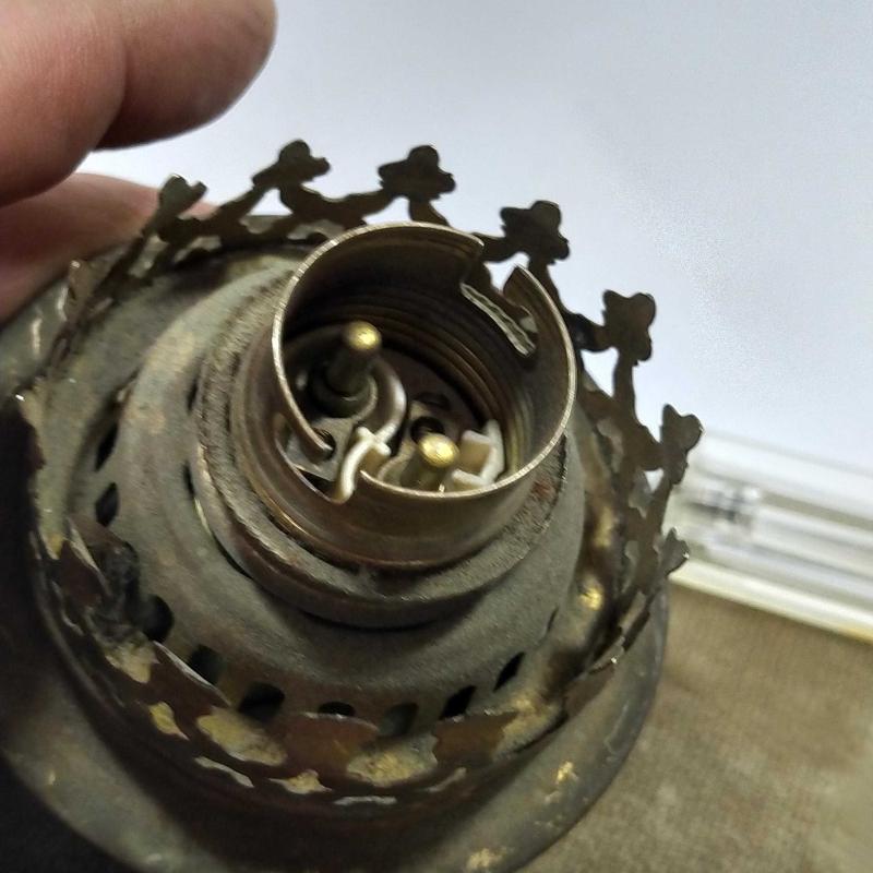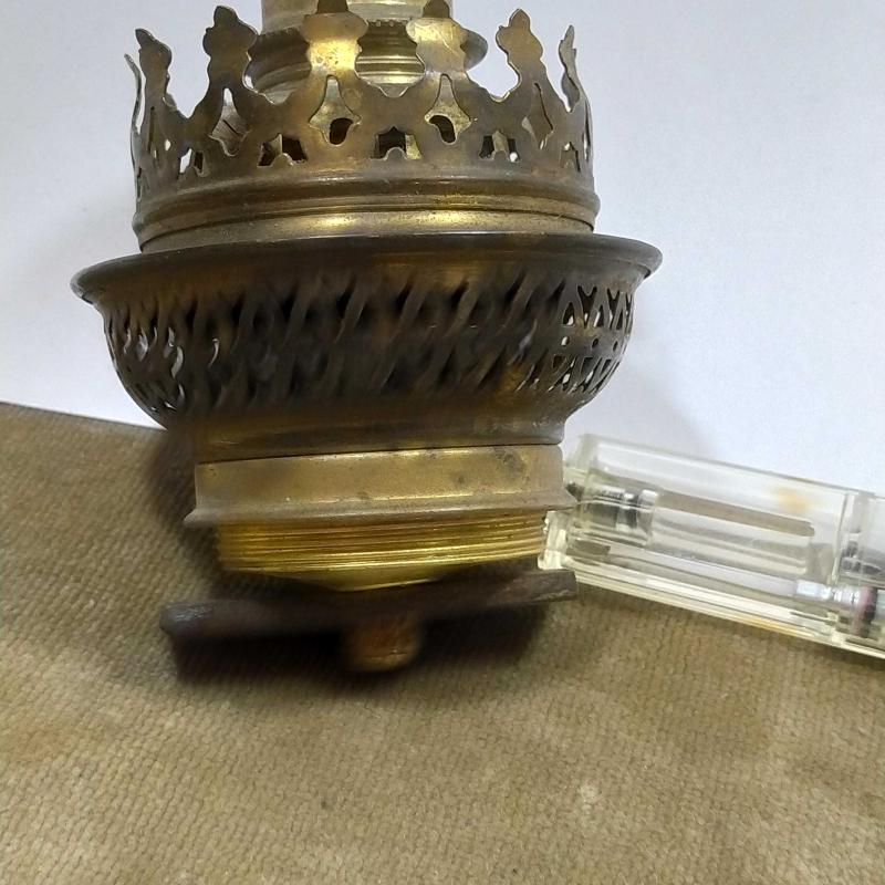 RF43----ELEKTRİKLİYE ÇEVRİLMİŞ ANTİKA GAZ LAMBASI MAKİNASI TEPESİ başlıklı antika/koleksiyon objesinin menşei belirtilmemiştir. 1950-1999 arası dönemine aittir.