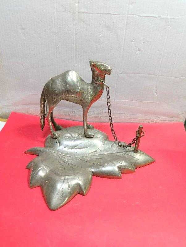 RF44---YAPRAK KAİDELİ PİRİNÇ DEVE FİGÜRÜ başlıklı antika/koleksiyon objesinin menşei belirtilmemiştir. 1920-1940 arası dönemine aittir.
