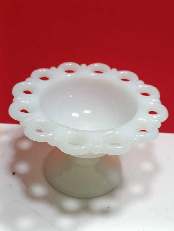 RF51----BEYAZ OPALİN CAM KASE-ŞEKERLİK başlıklı antika/koleksiyon objesi Türkiye menşe’lidir. 1960-1979 arası dönemine aittir.