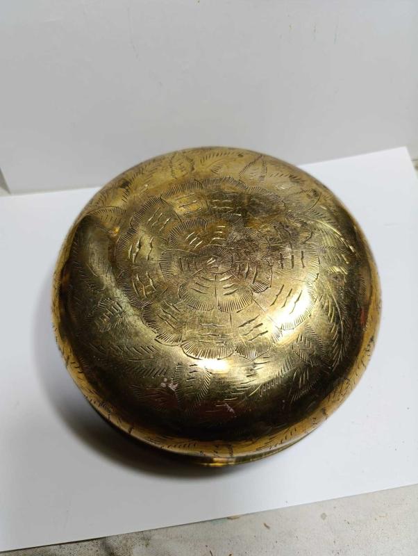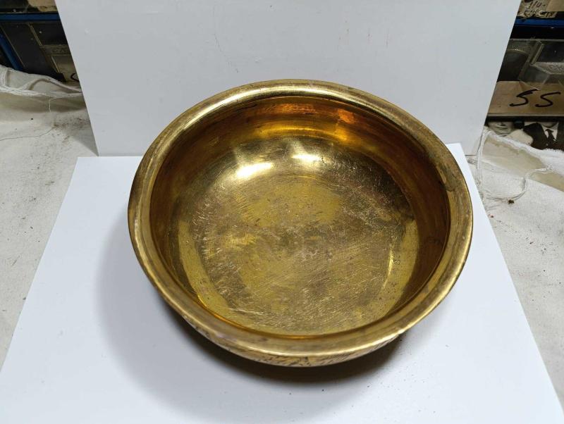 RF53-----ALTIN RENGİ KAPLAMA ÇİVİ İŞİ DEKORLU HAMAM TASI başlıklı antika/koleksiyon objesinin menşei belirtilmemiştir. Objenin ait olduğu dönem bilinmeketedir.