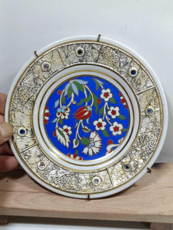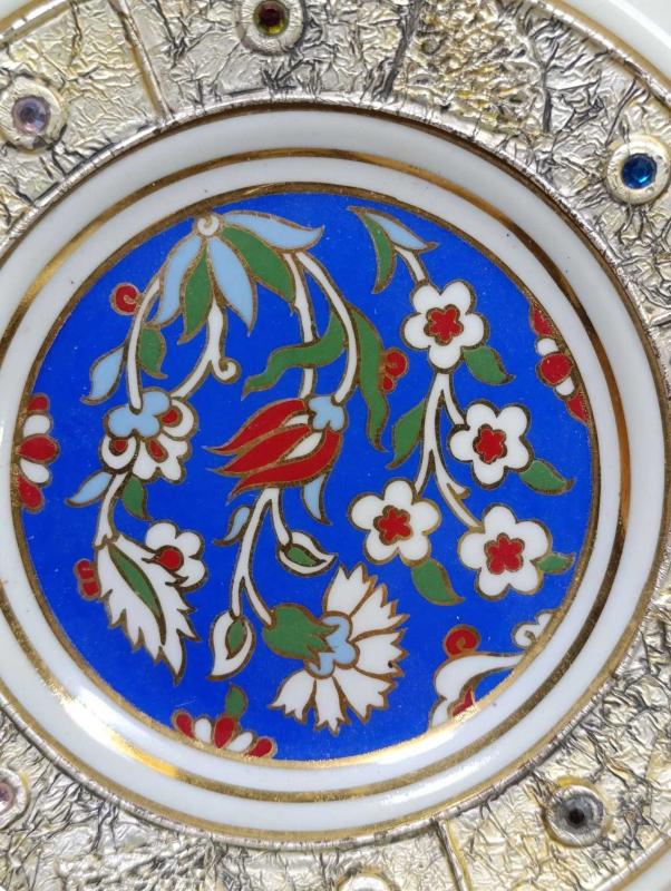 RF62----TAŞLI KÜTAHYA PORSELEN TABAK başlıklı antika/koleksiyon objesinin menşei belirtilmemiştir. Objenin ait olduğu dönem bilinmeketedir.