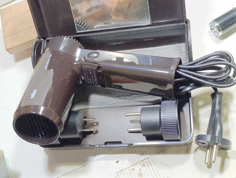RF74----KUTUSUNDA SEYAHAT İÇİN BRAUN ESKİ SAÇ KURUTMA MAKİNASI başlıklı antika/koleksiyon objesinin menşei belirtilmemiştir. 1950-1999 arası dönemine aittir.