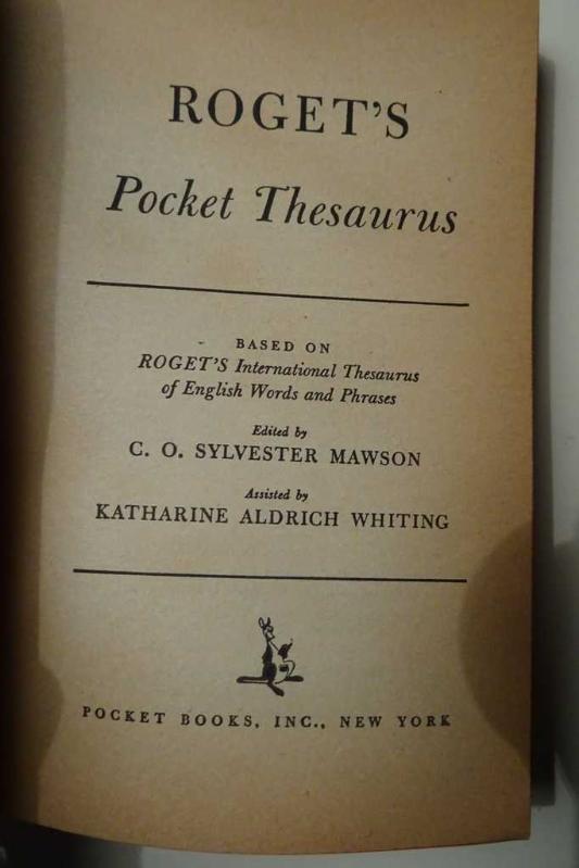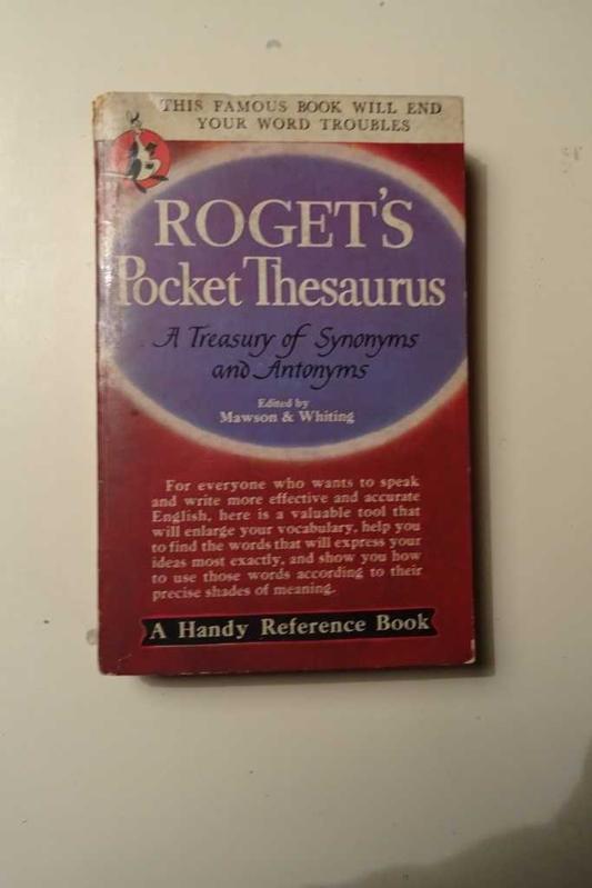 ROGET'S POCKET THESAURUS - A TREASURY OF SYNONYMS AND ANTONYMS, MAWSON & WHITING tarafından kaleme alınmıştır. Kitap 1946 yılında POCKET BOOKS tarafından [NEW YORK] yayınlanmıştır. ROGET'S POCKET THESAURUS - A TREASURY OF SYNONYMS AND ANTONYMS adlı eser İngilizce dilindedir.