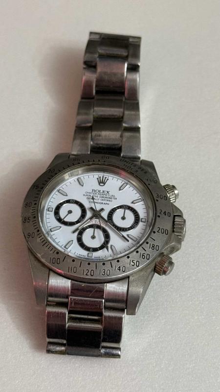 ROLEX OYSTER PERPETUAL SUPERLATIVE CHRONOMETER OFFICIALLY CERTIFIED COSMOGRAPH TEMİZ ÇALIŞIR DURUMDA BEYAZ KADRAN KARDANDA KUSUR YOK KORDON SAĞLAM EKSİKSİZ KORDON İÇ KISIMDA HAFİF KARARMALAR VAR KULANMAYA ENGEL DİL İSTEYEN TEMİZ LETİR ETA MAKİNA AĞIR SAAT BASİT SIRADAN OLANLARDAN DİL KALİTELİ ROLEX ERKEK KOL SAATİ