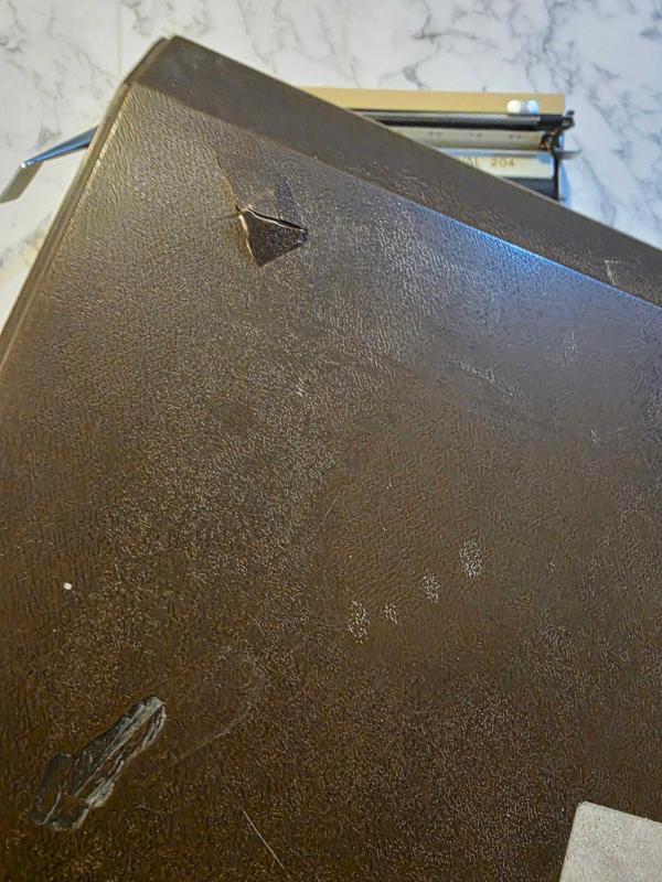 TAŞIMA ÇANTASI ÇATLAK VE KİLİTLERİ EKSİK SAĞ TARAFTA KAĞIT SARMA DÜĞMESİ EKSİK