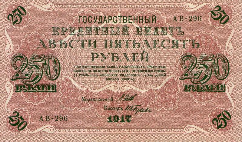 Currency 1917 Russia 250 Rubles Soviet Government Issue Banknote P36 Nice VF++