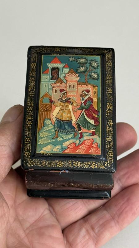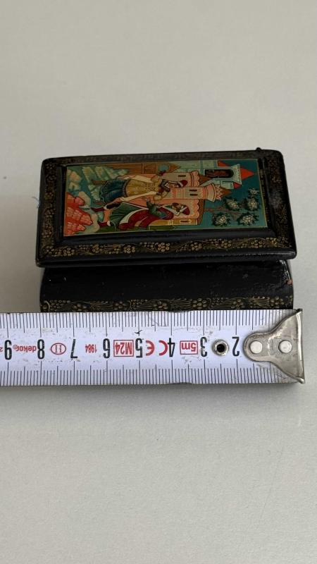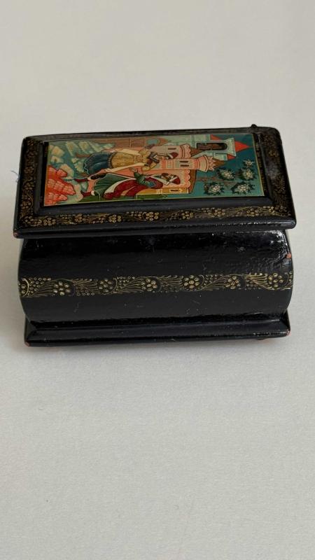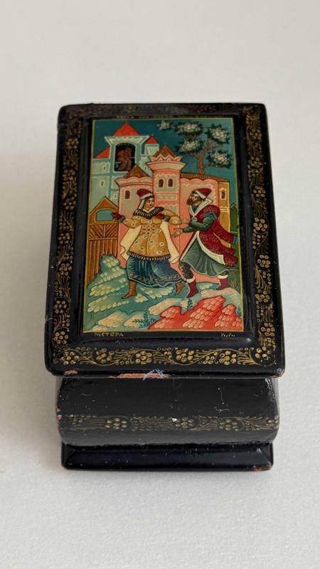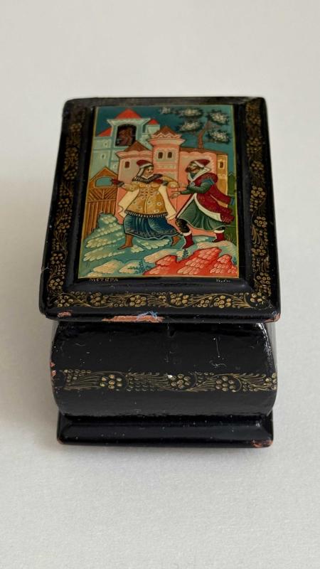 Rusya'ya özgü geleneksel bir el sanatı olan Rus lake kutusudur. Bu sanat formuyla ilgili bazı önemli noktalar şunlardır: Üretim: Genellikle papier-mâché (kağıt hamuru) kullanılarak yapılan bu kutular, ikon ressamlarının becerilerini seküler sanat eserlerine aktarmasıyla gelişmiştir. Sanatçılar: Kutuların üzerindeki detaylı minyatür resimler, Fedoskino, Palekh, Mstera veya Kholui gibi köylerdeki özel okullarda eğitim almış sanatçılar tarafından elle boyanır. İçerik: Temalar genellikle Rus halk masalları, manzaraları, edebiyat sahneleri veya günlük yaşamdan kesitlerdir. Özellikler: Boyamalar genellikle çok ince fırçalarla yapılır ve son olarak korunmaları için birçok kat cila (lake) uygulanır