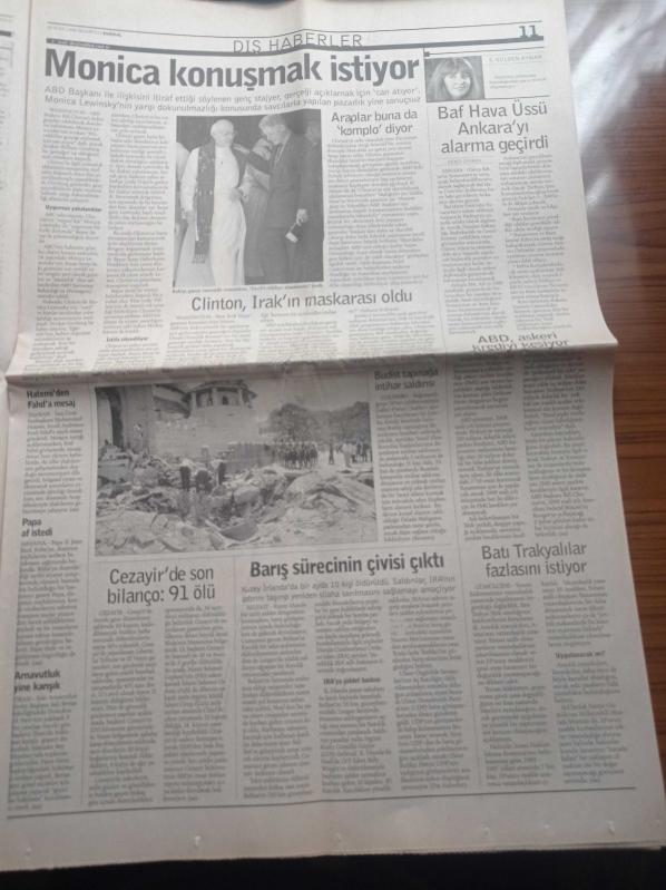 Radikal Gazetesi - 26 Ocak 1998 - Arif Erdem - Elvir Boliç - Lastik Gibi Maç Ülkerspor'un - NBA Ligi Sonuçları - Necmettin Erbakan'ın Bileti Kesildi - Abdullah Çatlı Güven Sazak Ve Ömer Lütfü Topal İlişkisi - Refah Partisi Var Mı Yok Mu - Beyaz Saray Seks Skandalları İle Çalkalanıyor - Diyanet İşlerinde Kadına Fetva Yasak adlı eser, Kitap > Süreli Yayınlar > Dergiler kategorisinde İkinci El olarak satıştadır.