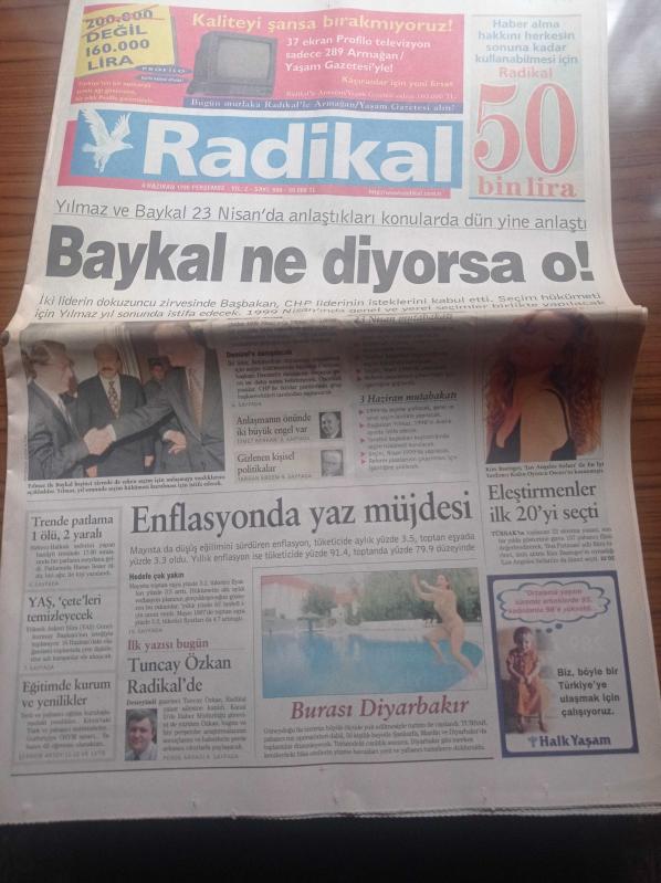 Sayfa Boyutu: 38*56cm Sayfa Sayısı:24 Radikal Gazetesi Yıpranma, sararmalar, kupon kesiği ve yırtılmalar zamana bağlı olarak görülebilir