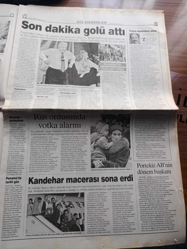 Radikal Gazetesi - Turkish Newspaper - 1 Ocak 2000 - mutlu yıllar - radikalin istihbaratı Noel Baba'nın ünlülere yeni yıl hediyelerinin listesini ele geçirdi - Bülent Ecevit'e Rahşan Ecevit'le ikinci 50 yıl - İsmail Cem'e yunanistan'la ortak Avrupa Birliği dönem başkanlığı - Osman Durmuş'a kendisini sevimli gösteren ayna - Fadıl Akgündüz'e devlet futbolcu tüketme çiftliği - Alaattin Çakıcı'ya gönüllü Fransa kültür elçiliği - Sergen Yalçın'a sahaya atla girme hakkı - Power FM Rana Pirinçcioğlu - 6 milyar kişilik 2000 partisi fotoğraf - Alaattin Çakıcı'nın adamı Erol Köse'yi vurdu - Rusya Lideri Boris Yeltsin 20. Yüzyılın son gününde istifa etti - İMKB 1999'da şahlandı - Asrın futbol nostaljisi yıl 1923 yer Taksim stadı fotoğraf - Trabzonspor'un eski başkanlarından Sadri Şener'den büyük eleştiri - Nurullah Ataç Halid Ziya Uşaklıgil Yaşar Kemal Orhan Pamuk fotoğraflar - cumartesi notları yazan Ülkü Tamer - 99 yılının son hitleri - Yazar Abdullah Rıza Ergüven felç geçirdi - Altın Koza, Aydın Doğan tarafından kaleme alınmıştır. Radikal Gazetesi - Turkish Newspaper - 1 Ocak 2000 - mutlu yıllar - radikalin istihbaratı Noel Baba'nın ünlülere yeni yıl hediyelerinin listesini ele geçirdi - Bülent Ecevit'e Rahşan Ecevit'le ikinci 50 yıl - İsmail Cem'e yunanistan'la ortak Avrupa Birliği dönem başkanlığı - Osman Durmuş'a kendisini sevimli gösteren ayna - Fadıl Akgündüz'e devlet futbolcu tüketme çiftliği - Alaattin Çakıcı'ya gönüllü Fransa kültür elçiliği - Sergen Yalçın'a sahaya atla girme hakkı - Power FM Rana Pirinçcioğlu - 6 milyar kişilik 2000 partisi fotoğraf - Alaattin Çakıcı'nın adamı Erol Köse'yi vurdu - Rusya Lideri Boris Yeltsin 20. Yüzyılın son gününde istifa etti - İMKB 1999'da şahlandı - Asrın futbol nostaljisi yıl 1923 yer Taksim stadı fotoğraf - Trabzonspor'un eski başkanlarından Sadri Şener'den büyük eleştiri - Nurullah Ataç Halid Ziya Uşaklıgil Yaşar Kemal Orhan Pamuk fotoğraflar - cumartesi notları yazan Ülkü Tamer - 99 yılının son hitleri - Yazar Abdullah Rıza Ergüven felç geçirdi - Altın Koza adlı eser Türkçe dilindedir.