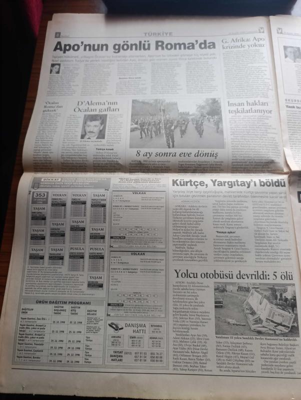 Radikal Gazetesi - Turkish Newspaper - 19 Aralık 1998 - genel ve yerel seçimlerin bir hukuk oyunuyla birbirinden ayrılması gündemde - Bülent Ecevit ile Deniz Baykal anlaşmama konusunda anlaştı fotoğraf - çöl tilkisi harekatı üçüncü günde Bağdat dışındaki hedeflere kaydı - Bill Clinton'ın kaderi bugün oylanıyor - yargıtayda Kürtçe çatlağı - DYP milletvekili Meral Akşener'in silahı geri tepti - Aydın Doğan'a rekor tazminat - Cem Yılmaz Her şey çok güzel olmayacak tam sayfa röportaj - Süleyman Demirel Adana'da yapılan camiye 1 trilyonluk maddi destek veren Sabancı ailesinden Sakıp Sabancı'ya teşekkür etti fotoğraf - Ramazan bu gece başlıyor - Alaattin Çakıcı'nın iki tetikçisi tutuklandı - Yeşil bilmecesini DNA testi çözecek - D'Alema'nın Öcalan gafları - New York'ta Irak'taki harekata karşı protesto - Galatasaray teknik direktörü Fatih Terim Filipescuyu sattırmam - Oğuz Çetin'in transferi arap saçı - Fenerbahçe soğuktan korkmuyor - Beşiktaş'ta Amokachi'ye ameliyat yok - Eşber Yağmurdereli, Aydın Doğan tarafından kaleme alınmıştır. Radikal Gazetesi - Turkish Newspaper - 19 Aralık 1998 - genel ve yerel seçimlerin bir hukuk oyunuyla birbirinden ayrılması gündemde - Bülent Ecevit ile Deniz Baykal anlaşmama konusunda anlaştı fotoğraf - çöl tilkisi harekatı üçüncü günde Bağdat dışındaki hedeflere kaydı - Bill Clinton'ın kaderi bugün oylanıyor - yargıtayda Kürtçe çatlağı - DYP milletvekili Meral Akşener'in silahı geri tepti - Aydın Doğan'a rekor tazminat - Cem Yılmaz Her şey çok güzel olmayacak tam sayfa röportaj - Süleyman Demirel Adana'da yapılan camiye 1 trilyonluk maddi destek veren Sabancı ailesinden Sakıp Sabancı'ya teşekkür etti fotoğraf - Ramazan bu gece başlıyor - Alaattin Çakıcı'nın iki tetikçisi tutuklandı - Yeşil bilmecesini DNA testi çözecek - D'Alema'nın Öcalan gafları - New York'ta Irak'taki harekata karşı protesto - Galatasaray teknik direktörü Fatih Terim Filipescuyu sattırmam - Oğuz Çetin'in transferi arap saçı - Fenerbahçe soğuktan korkmuyor - Beşiktaş'ta Amokachi'ye ameliyat yok - Eşber Yağmurdereli adlı eser Türkçe dilindedir.