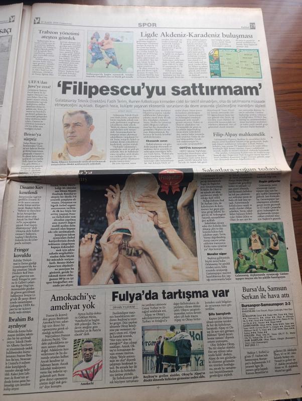Radikal Gazetesi - Turkish Newspaper - 19 Aralık 1998 - genel ve yerel seçimlerin bir hukuk oyunuyla birbirinden ayrılması gündemde - Bülent Ecevit ile Deniz Baykal anlaşmama konusunda anlaştı fotoğraf - çöl tilkisi harekatı üçüncü günde Bağdat dışındaki hedeflere kaydı - Bill Clinton'ın kaderi bugün oylanıyor - yargıtayda Kürtçe çatlağı - DYP milletvekili Meral Akşener'in silahı geri tepti - Aydın Doğan'a rekor tazminat - Cem Yılmaz Her şey çok güzel olmayacak tam sayfa röportaj - Süleyman Demirel Adana'da yapılan camiye 1 trilyonluk maddi destek veren Sabancı ailesinden Sakıp Sabancı'ya teşekkür etti fotoğraf - Ramazan bu gece başlıyor - Alaattin Çakıcı'nın iki tetikçisi tutuklandı - Yeşil bilmecesini DNA testi çözecek - D'Alema'nın Öcalan gafları - New York'ta Irak'taki harekata karşı protesto - Galatasaray teknik direktörü Fatih Terim Filipescuyu sattırmam - Oğuz Çetin'in transferi arap saçı - Fenerbahçe soğuktan korkmuyor - Beşiktaş'ta Amokachi'ye ameliyat yok - Eşber Yağmurdereli adlı eser, Kitap > Süreli Yayınlar > Gazeteler > Türkiye > Genel > Günlük kategorisinde İkinci El olarak satıştadır.