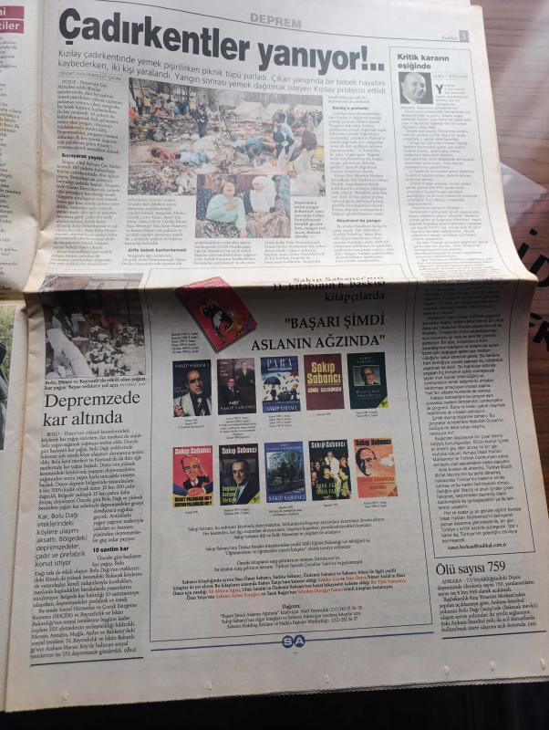 Radikal Gazetesi - Turkish Newspaper - 26 Kasım 1999 - afetzedeyi Şimdi de yangın vurdu - Kızılay'ın çadır kentinde yemek pişirmek için yakılan piknik tüpü patladı bir bebek öldü - Abdullah Öcalan'ın idamı onaylandı - Abdullah Öcalan'ın avukatları tedbir talep etti - Marmara'nın deprem haritası - Cumhurbaşkanı Süleyman Demirel Edirne Merkez ilköğretim okulunu açtı - Yeraltı dünyasının ünlü isimlerinden Nihat Akgün öldürüldü - Profesör Naci Görür deprem riski artmıştır dedi - Bülent Ecevit'ten Hint şiiri - gazeteci Metin Göktepe'ye vurulan cop toplumsalmış - hukukçular Abdullah Öcalan'ın infazı pahalıya patlar - şehit yakınları idam kararının onaylanmasını sevinçle karşıladı - bir grup şehit yakını İHD genel merkezini basarak Başkan Hüsnü Öndülü dövdü - işkenceye karşı politika yazan Murat Belge - salkım hanımın taneleri filmi başrolde Hülya Avşar sinemalarda - neredesin Ronaldo - Naim Süleymanoğlu'ndan Halil Mutlu'ya övgü - Galatasaray'ın forveti çöktü - Fenerbahçe'ye milli engel adlı eser, Kitap > Süreli Yayınlar > Gazeteler > Türkiye > Genel > Günlük kategorisinde İkinci El olarak satıştadır.