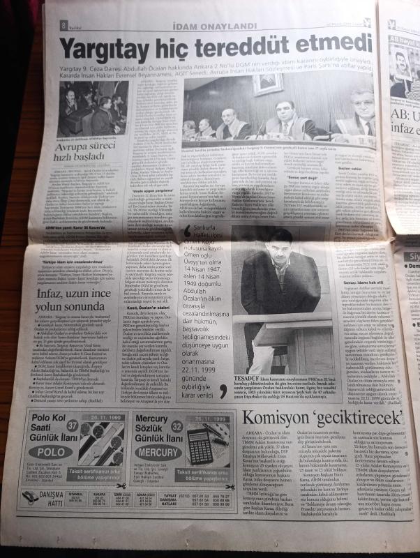 Radikal Gazetesi - Turkish Newspaper - 26 Kasım 1999 - afetzedeyi Şimdi de yangın vurdu - Kızılay'ın çadır kentinde yemek pişirmek için yakılan piknik tüpü patladı bir bebek öldü - Abdullah Öcalan'ın idamı onaylandı - Abdullah Öcalan'ın avukatları tedbir talep etti - Marmara'nın deprem haritası - Cumhurbaşkanı Süleyman Demirel Edirne Merkez ilköğretim okulunu açtı - Yeraltı dünyasının ünlü isimlerinden Nihat Akgün öldürüldü - Profesör Naci Görür deprem riski artmıştır dedi - Bülent Ecevit'ten Hint şiiri - gazeteci Metin Göktepe'ye vurulan cop toplumsalmış - hukukçular Abdullah Öcalan'ın infazı pahalıya patlar - şehit yakınları idam kararının onaylanmasını sevinçle karşıladı - bir grup şehit yakını İHD genel merkezini basarak Başkan Hüsnü Öndülü dövdü - işkenceye karşı politika yazan Murat Belge - salkım hanımın taneleri filmi başrolde Hülya Avşar sinemalarda - neredesin Ronaldo - Naim Süleymanoğlu'ndan Halil Mutlu'ya övgü - Galatasaray'ın forveti çöktü - Fenerbahçe'ye milli engel, Aydın Doğan tarafından kaleme alınmıştır. Radikal Gazetesi - Turkish Newspaper - 26 Kasım 1999 - afetzedeyi Şimdi de yangın vurdu - Kızılay'ın çadır kentinde yemek pişirmek için yakılan piknik tüpü patladı bir bebek öldü - Abdullah Öcalan'ın idamı onaylandı - Abdullah Öcalan'ın avukatları tedbir talep etti - Marmara'nın deprem haritası - Cumhurbaşkanı Süleyman Demirel Edirne Merkez ilköğretim okulunu açtı - Yeraltı dünyasının ünlü isimlerinden Nihat Akgün öldürüldü - Profesör Naci Görür deprem riski artmıştır dedi - Bülent Ecevit'ten Hint şiiri - gazeteci Metin Göktepe'ye vurulan cop toplumsalmış - hukukçular Abdullah Öcalan'ın infazı pahalıya patlar - şehit yakınları idam kararının onaylanmasını sevinçle karşıladı - bir grup şehit yakını İHD genel merkezini basarak Başkan Hüsnü Öndülü dövdü - işkenceye karşı politika yazan Murat Belge - salkım hanımın taneleri filmi başrolde Hülya Avşar sinemalarda - neredesin Ronaldo - Naim Süleymanoğlu'ndan Halil Mutlu'ya övgü - Galatasaray'ın forveti çöktü - Fenerbahçe'ye milli engel adlı eser Türkçe dilindedir.