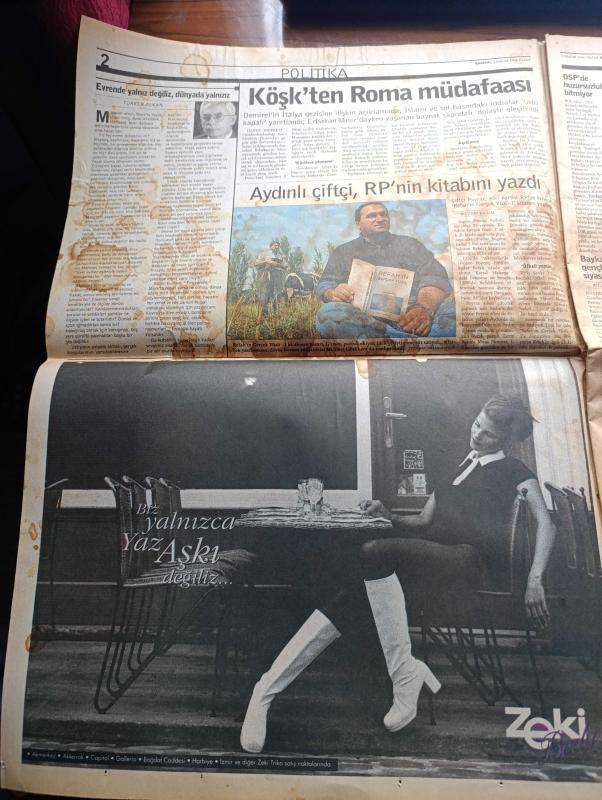 Radikal Gazetesi - Turkish Newspaper - 3 Kasım 1996 - Refah Partisi'nin demokratikleşme paketinden türban çıkacak - Refah Partisi'nin yayın organı milli gazetede yüz öpmek mekruh dendi Fotoğrafı - Tansu Çiller'in bankacısı Halit Cıngıllıoğlu'na soruşturma - madeni 50 bin liralık 12 Kasım'da piyasada - cezaevindeki Işık Yurtçu'ya basın özgürlük ödülü - kabadayı Sedat Peker'den uyuşturucu vakfı Fotoğrafı - Aczmendiler rejimi yıkacağız - Yazar Emine Şenlikoğlu her kesimin yobazı var - Bosna ABD'ye boyun eğdi - Atruş Kampı BM'nin değil PKK'nın elinde - Fenerbahçe ne Ada dinliyor ne Körfez - Galatasaray teselli arıyor - NBA'de ilk maçlar oynandı - tiyatro sinema programı - TÜYAP kitap fuarının Onur yazarı Peride Celal ile röportaj - Nazım Hikmet'in Kuvayı Milliye destanı kapalı gişi oynuyor fotoğraf - Michael Jackson'ın konser rüşveti Fotoğrafı - Charlie Chaplin'den Wood Allen'a yüz yıldır Beyaz perdeyi kahkaya boğan filmlerin en iyileri seçildi fotoğraf - Cemal Süreya şiir ödülleri adlı eser, Kitap > Süreli Yayınlar > Gazeteler > Türkiye > Genel > Günlük kategorisinde İkinci El olarak satıştadır.